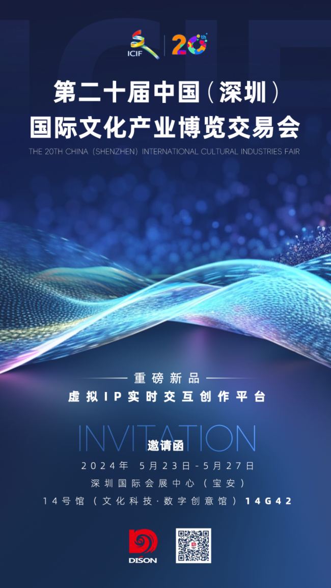 迪生数字诚挚地邀请您参加第二十届中国(深圳)国际文化产业博览交易会 。本次盛大的博览会将于5月23日至5月27日 在深圳国际会展中心(宝安) 举办。全球文化产业精英和专家学者将汇集于此,共同探索文化产业的新趋势、新技术和新机遇。
