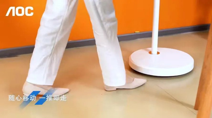 AOC办公随心屏的关键词正是“灵活”。其配备轻音万向轮,可以灵活移动打破空间固有性,一推即走,想在哪里开会就在哪里开。