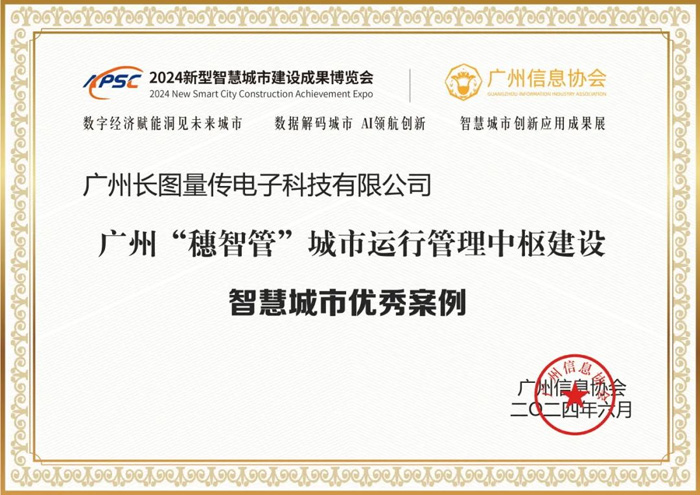 2024年6月7日,CHARTU长图凭借【广州“穗智管”城市运行管理中枢建设】项目斩获“智慧城市优秀案例奖”。此次获奖彰显了CHARTU长图在智慧城市领域的领先地位与硬核实力,同时表明CHARTU长图的创新性技术和产品受到了市场的高度认可。未来,CHARTU长图将继续以市场需求为导向,以技术创新为引领,持续输出高质量、高水平的产品与服务,带动智慧城市建设发展。