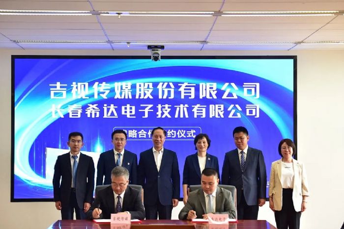 6月12日,吉视传媒与长春希达电子技术有限公司签订战略合作协议。双方将充分发挥各自在数字技术及光学智造方面的优势,共同为吉林省培育新质生产力积极助力。吉视传媒党委书记、董事长褚春彦,希达电子董事长郑喜凤参加签约仪式。