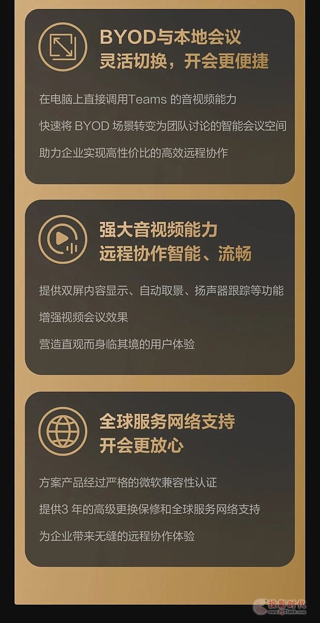方案产品经过严格的微软兼容性认证,提供3 年的高级更换保修和全球服务网络支持,为企业带来无缝的远程协作体验。