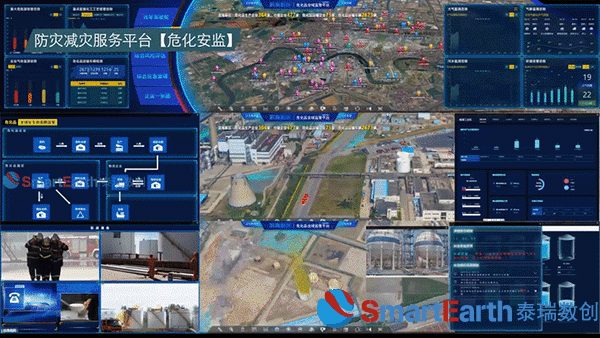 泰瑞数创搭建包括工厂、矿山、危化品监管等多个生产安全方向的数字孪生信息化能力平台。其中危险化学品全域监管系统实现危化品企业数据统计和预报预警、应急处置,具有动态监测、实时预警、统计分析、安全提示、应急处置、监管服务等功能。横向连接燃气、消防、应急等部门;纵向与加油站、加气站、危化品企业对接。