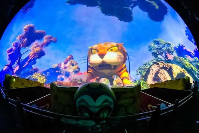 取材于上海美术电影制片厂创作国内首部彩色动画片为主题的《大闹天宫》飞行影院,再现力取定海神针、激战天兵天将等经典西游情节。球幕提供逼真的沉浸视觉,飞行座舱则根据剧情急速升降、平移、仰俯与旋转,让游客惊心动魄,回味无穷。