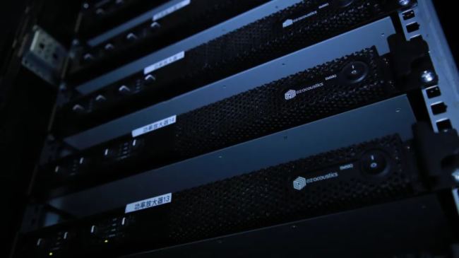 本次演出使用的扬声器均采用易科自主研发品牌ezacoustics。主扩声系统配置了左、中、右三组固定曲率扬声器阵列,由3只 ezacoustics SLV15N组成。超低扬声器选用了四只型号为THB218N双18寸扬声器。