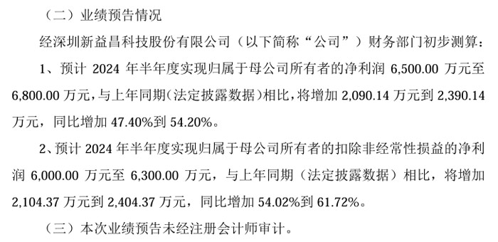新益昌:上半年净利预计同增47.4%-54.2%