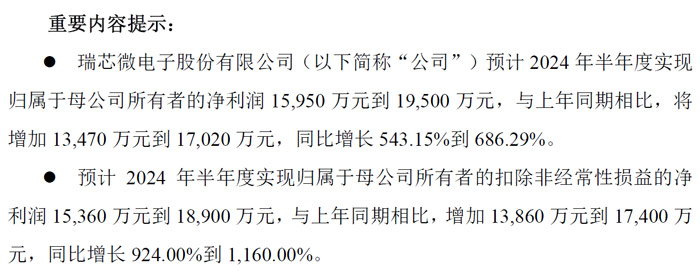 瑞芯微:净利润同比增长543.15%到686.29%