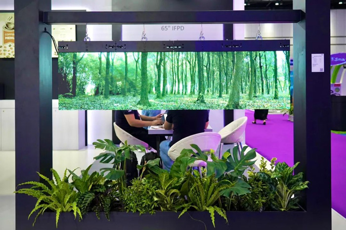 BOE MLED COB大屏产品亮相此次展会。该屏幕分辨率达2880*1620,采用自研的表面封装方案,实现了暗态下的优秀墨色一致性和亮态下的低功耗高对比度。这一产品的出色表现,为会议室、商超、展厅等多种应用场景提供了灵活高效的解决方案。