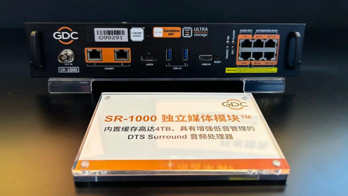 本次展出了系列媒体服务器,其中GDC第六代数字影院媒体服务器SR-1000。它是唯一兼容1至4代DLP Cinema数字放映机以及Sony4K数字放映机的IMB。