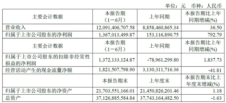 大华股份半年报:营收148.67亿元,净利18.10亿元