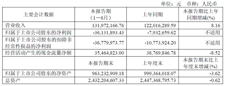 报告期内,瑞华泰实现营业收入13,197.22万元,同比增加8.16%;归属于母公司所有者的净利润亏损3,613.19万元;归属于上市公司股东的扣除非经常性损益的净利润亏损3,678.00万元;2024年6月末公司总资产243,220.46万元,与上年末基本持平;归属于上市公司股东的净资产96,323.29万元,比上年末下降3.62%。