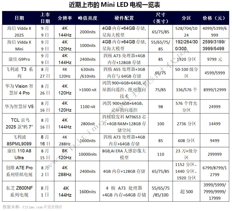 正是看到了Mini LED技术在高端市场的显著影响力和未来潜力,主流电视品牌诸如海信VIDDA、康佳、创维、飞利浦、华为、TCL、三星、索尼、东芝、TCL雷鸟等今年都加大了Mini LED电视的新品推出力度,特别是临近十一黄金周的最近一个多月,就有十几大系列电视新品推出,抢先布局即将到来的金秋销售旺季。