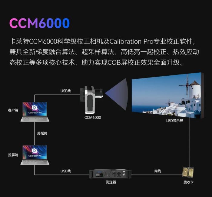 在LED Calibration Solution展区中,卡莱特隆重介绍了CCM6000。这款科学级校正相机以其高效、精准的校正能力,为LED显示屏的画质提升提供了有力保障,让MLED技术升级实现质的飞跃。