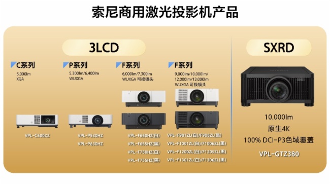 索尼VPL-F1006ZL与VPL-F901ZL将出色图像质量、轻松设置、低维护需求等优点集于一身,中心亮度分别为10,400流明和9,300流明,具有超解像真实创作技术、智能场景设置功能、出色的镜头位移调整范围等专业表现,多款可选镜头可适用于不同的安装要求。