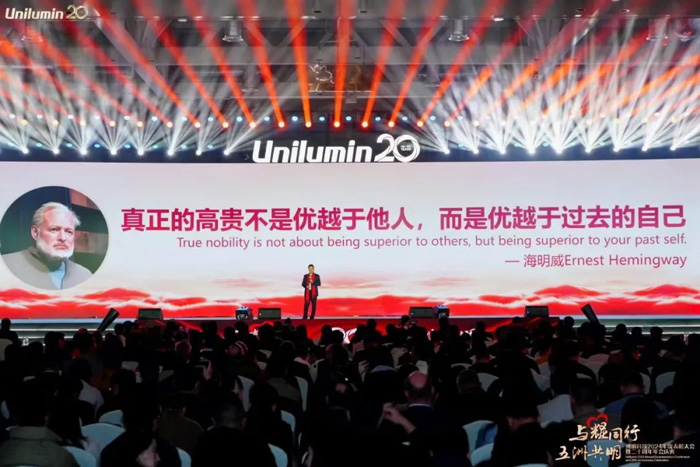 林洺锋董事长随后在致辞中深情回顾了公司创立20年来的发展历程,同时感谢每一位洲明人、家属以及各界朋友一路以来的陪伴与信赖。他提出,技术创新和全球化布局是洲明持续成长的活力源泉,并表示,“2025年是洲明科技迈向全球化与创新发展的关键一年。LED技术在新消费场景中的应用与升级,将为消费者带来全新的数字化体验。”