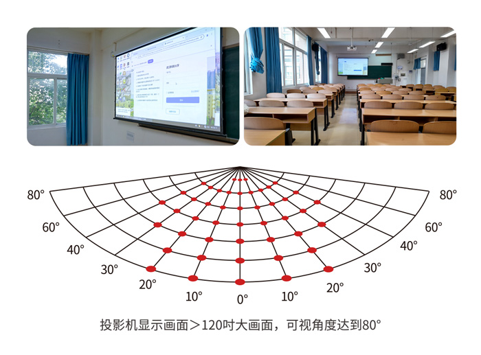 光峰激光高端高亮教育投影机,流明范围涵盖4500-9400流明,具备多种可选规格。即便处于白天拉开窗帘或开灯的强光环境下,亦能确保画面明亮清晰。其搭配120吋投影幕布,让学生在教室的任何位置都能享受到清晰、无色差的大画面,为学生和教师带来出色的视觉体验,确保教学内容的高质量呈现。