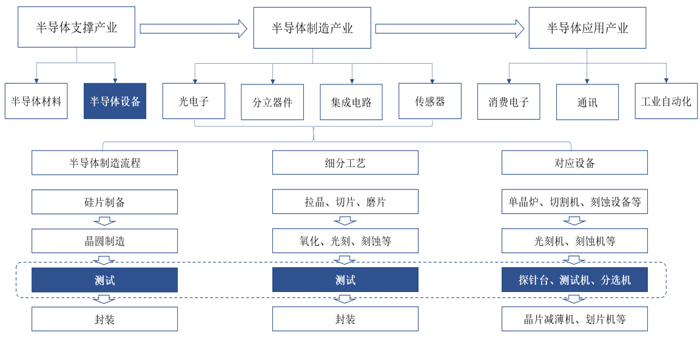 矽电股份主要从事半导体专用设备研发生产。主要应用于半导体制造流程中的硅片制备、晶圆制造、测试和封装等环节,包括单晶炉、光刻机、 CVD、刻蚀机、探针台、测试机、分选机、减薄机、划片机等。矽电股份产品涵盖探针台、分选机、曝光机、AOI检测设备等。