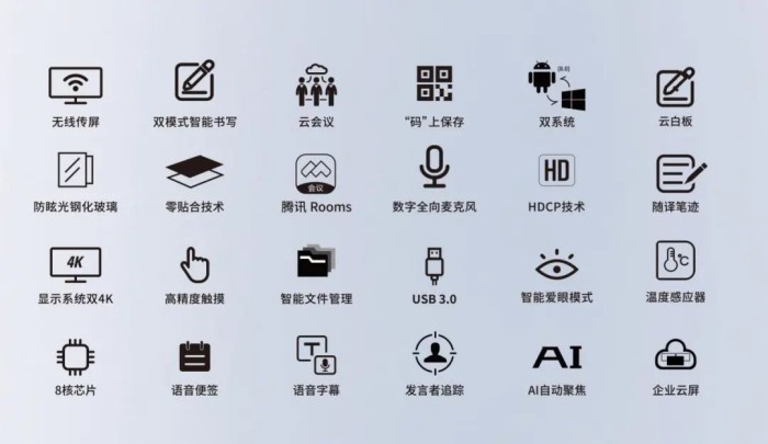 功能性上,AOC智能会议平板兼具创新与实用为一体。其具备跨屏协作、无线BYOM、NFC传屏、双模式智能书写、双系统、高精度触控、八核芯片、语音字幕、语音便签等丰富功能,充分融合AIoT物联网技术、大数据、AI人工智能、生物识别等核心技术,为全行业打造一体化、智慧化、便捷化高效会议云平台,协助企业实现从传统会议向数字化智能会议办公模式的转型。