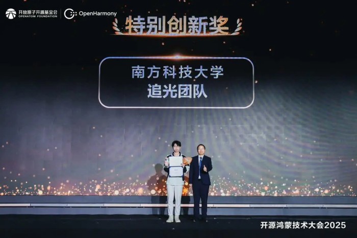 在二等奖的角逐中,深圳技术大学“216战队”推出低延时智能座舱平台,南方科技大学“南科智图”构建文献理解可视化系统,南京航空航天大学“WinHarmony”实现安卓到鸿蒙UI代码的智能转译,而南科大的“追光团队”则以AI交互玩偶展现多模态陪伴的新可能。共同描绘出“开源鸿蒙+AI”的丰富图景。