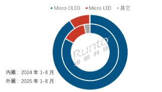 在显示技术方面,Micro OLED凭借更高的像素密度等优势,成为AR眼镜绝对的主要方案。洛图科技(RUNTO)线上数据显示,2025年1-8月,Micro OLED在AR线上市场的占比高达90.8%,较2024年同期增长了7.8个百分点。