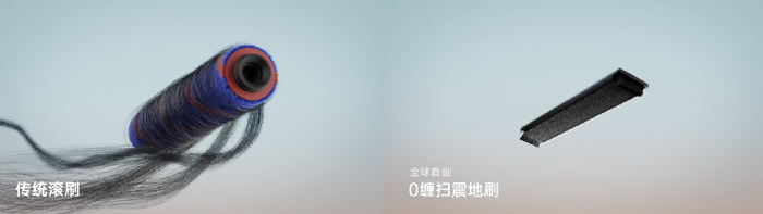 这种创新的扫震方式,模拟了最原始的扫地动作,让清洁回归简单。通过最基础的扫动原理,配合强劲吸力,从结构上杜绝了缠绕的可能。