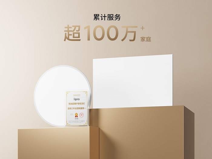 2025年10月13日,lipro凭借高端超薄护眼吸顶灯,获得由国内知名咨询机构尚普咨询集团颁发的《市场地位声明书》,被权威认证为「连续三年全国销量第一」。