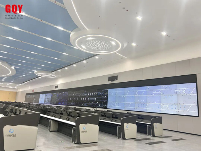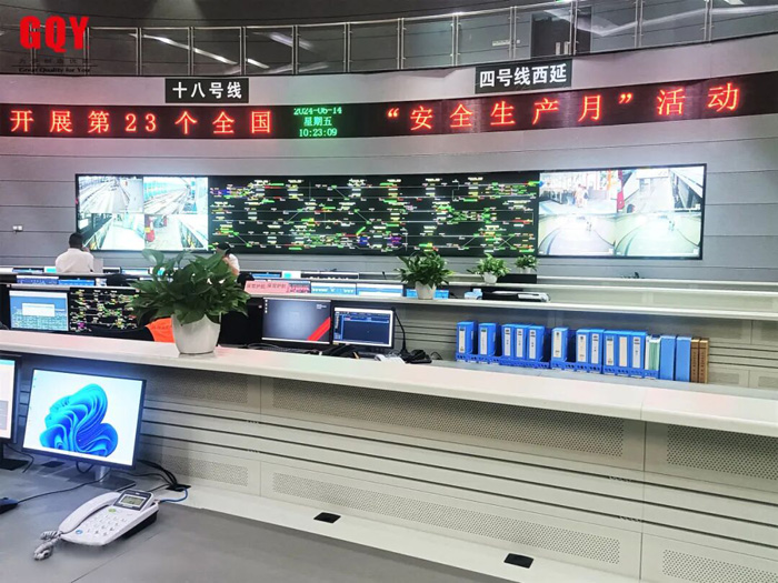 在宁波某段的轨道交通指挥中心,路网图显示了所有在线列车的运行状态,每一个移动的小圆点都代表正在运行的地铁列车,车次号、满载率、晚点情况一目了然,系统还能实时统计各项列车运行指标。近年来,GQY视讯打造的轨道交通指挥中心基本覆盖了宁波市地铁全域范围,从1号线到8号线,都有GQY视讯的服务支撑。浙江明珠城市杭州市的轨道交通运营应急指挥系统也有GQY的护航,3、4、6、7、10、12、14以及城际铁路线的监控指挥中心都有GQY可视化产品解决方案的身影,西南网红城市成都的地铁10号线三期和13号线线路监控中心自投入使用后也持续稳定发挥其重要作用……高清LED大屏在保障地铁运营安全方面发挥了关键作用,全面整合地铁运行数据、客流信息,帮助调度人员及时掌握全线动态,实时指挥调度,确保地铁平稳运营,为市民和游客的出行提供了坚实的保障。