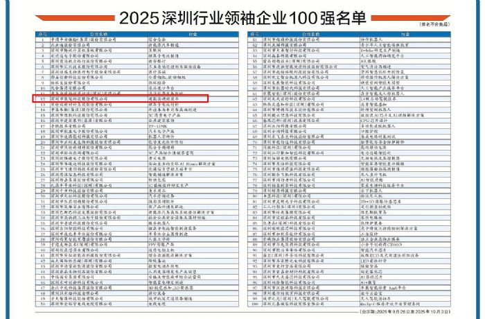 康冠科技入选“2025深圳行业领袖企业100强”榜单