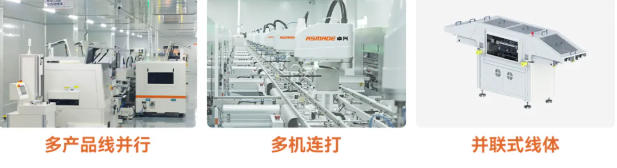不仅支持常规的“单机单产品”或者“多机单产品”两种模式,同时可支持"多产品共线"生产,即:一条线体同时可以完成多个不同产品的生产。