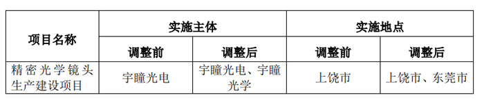 宇瞳光学:调整精密光学镜头生产建设项目实施主体和地点等