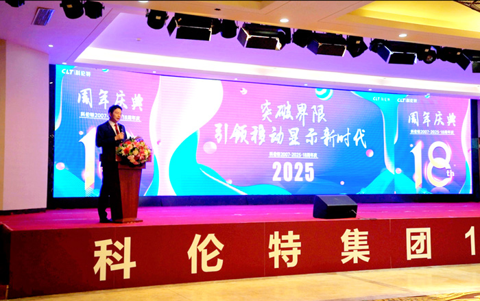 3月15日,科伦特2025年度表彰大会暨十八周年庆典在深圳大与文体度假中心隆重举办。整场活动以”突破界限,引领移动显示新时代”为主题,全体科伦特人、合作伙伴、各界嘉宾齐聚一堂,共同回顾科伦特十八载峥嵘岁月,展望商业移动显示新未来。