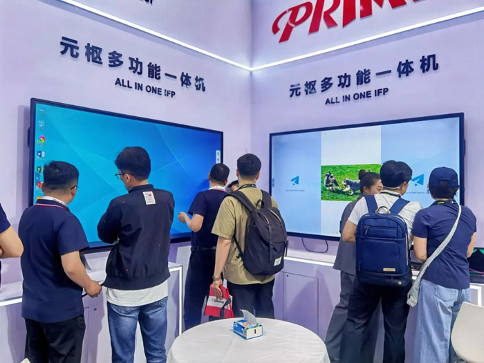 展会上,PRIMA厦华的智能商显产品及音视频解决方案大放异彩,覆盖智慧教育、智能办公、指挥调度、智慧零售、数字化展厅等多个领域,以创新科技赋能千行百业,赢得现场观众的一致好评!参展首日,CA5-01展区人气爆棚,PRIMA厦华团队与来自欧洲、北美、亚太等地的行业伙伴深入交流,分享最新技术成果。众多客户纷纷表示:“PRIMA厦华的快速迭代能力和深度定制化服务,真正解决了我们的行业痛点!”