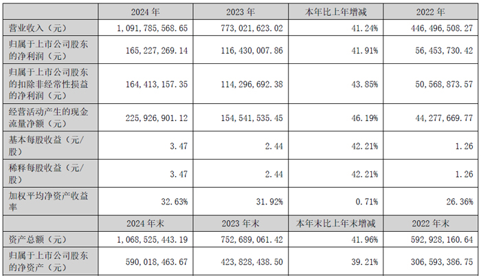 4月28日,广东弘景光电科技股份有限公司发布2024年年度报告,这也是该企业上市后首份年报。报告期内,实现营业收入10.92亿元,同比增长41.24%;实现归属公司股东净利润1.65亿元,同比增长41.91%;实现扣非净利润1.64亿元,同比增长43.85%。