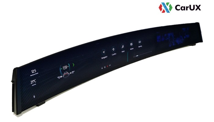 CarUX推出业界独创「内装整合式透光皮革模块」,结合直下式MiniLED背光技术,使影像透过皮革亦保有高画质、高亮度,并藉由整合透光皮革、显示器与气氛灯光源,使驾驶透过皮革仍可正常触控操作显示画面,开启车用隐藏式显示器的时尚设计新美学。