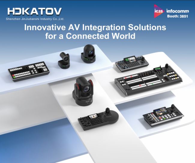 2025年6月11日,美国佛罗里达州奥兰多橙县会议中心——在全球最具影响力的专业视听盛会之一InfoComm 2025 USA上,深圳市金九天视实业有限公司(高端品牌:HDKATOV)携旗下核心产品震撼亮相,集中展示了在PTZ摄像机、摄像机控制键盘、导播切换台与导播控制面板等领域的最新技术成果,充分诠释了高端品牌“HDKATOV”的核心价值。