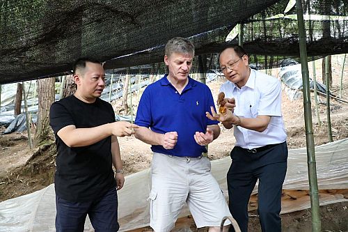 云南省金平县曾是红河州贫困人口最多、贫困程度最深的国家级贫困县,“安发模式” 更成为精准扶贫的 “金钥匙”。2016年,响应国家扶贫号召,在外交部引荐下,安发以古田生态园为样本,通过“安发模式”与金平县达成扶贫项目合作。安发通过对金平县金河镇、老勐镇及当地环境和资源的深入调研,并走访诺玛养殖专业合作社及当地农户,提出在地果、药、茶资源的基础上,引进生长快、产量高、见效好的黑木耳、杏鲍菇等等食用菌品种和猕猴桃等名优水果品种,通过龙头企业带动,打造扶贫样板。为此,安发通过免费提供共黑木耳及杏鲍菇菌种、猕猴桃及黄精中药材种苗,定期到试种基地现场技术指导,培养专业农民,并积极做好原料回收和推广销售,培育了云南金平诺玛养殖专业合作社食药用菌种植大户,取得了很好的龙头带动效益。
