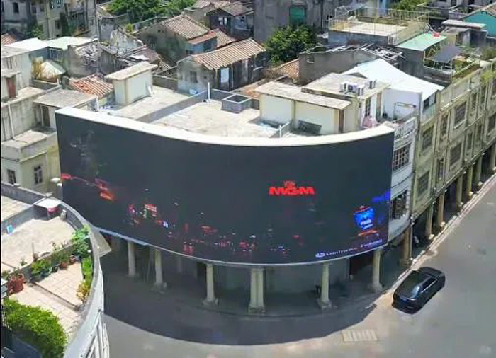 当百年骑楼遇上现代数字技术,历史街区瞬间“活”了起来。联建光电为这片地标量身打造的裸眼3D大屏,特别选用了FS4系列户外弧形固装产品。该系列户外固装产品优势突出,不仅具备宽视角、高防护性、强稳定性,还兼顾了维护的便捷性。尤为关键的是其专利面罩技术:这一技术赋予大屏超高对比度,让画面无论在白天强光下还是夜晚弱光中,都能始终保持清晰稳定的显示效果。而稳定的性能与易维护的特性叠加,更有效降低了显示屏长期运营中的各类成本,让技术赋能的生动场景得以延续。