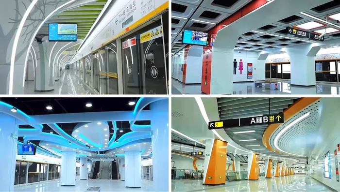 不同区域内,8号线采用的色彩体系也让乘客眼前一亮。该方案以文字、图片、视频等多样化的实时内容展示,呈现“东面春之绿、南面夏之红、西面秋之金、北面冬之蓝”古典美学,丰富地铁信息内容宣传,同时增添艺术观赏性与趣味性,吸引乘客驻足流连。通过搭乘地铁,乘客不仅能享受到优质、高效的公共交通服务,还能集中打卡无柱穹顶车站、主题文化长廊等网红站点,感受靓丽城市风采,进一步加强城市文化认同。
