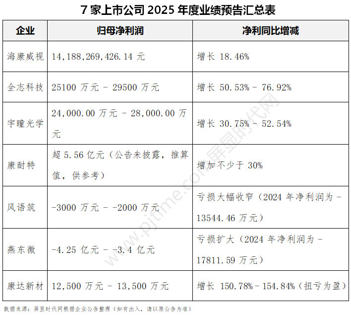 近日,海康威视、全志科技、宇瞳光学、康耐特、风语筑、燕东微、康达新材七家上市公司密集披露2025年度业绩快报或预告。这份集中释放的业绩信号,清晰勾勒出多赛道上市公司在复杂多变的市场环境中的经营百态——既有稳健增长、大幅预增的亮眼表现,也有扭亏为盈、亏损收窄的积极转机,亦不乏短期承压的经营挑战。这种多元态势的背后,是企业战略调整、行业需求迭代与精细化管理能力的深度耦合,更是当前产业发展阶段性特征的直观映射。