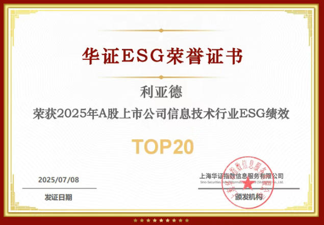 入选华证指数“2025年A股上市公司信息技术行业ESG绩效TOP20”