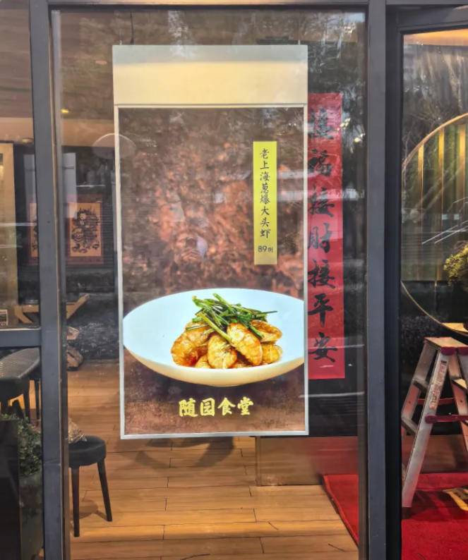 毗邻东方明珠的沪上知名餐厅上海随园食堂,近日完成店铺形象升级,橱窗处的视颐55英寸超薄双面大屏成为点睛之笔。高清复古画面与周遭景致无缝相融,既有老上海的温婉韵味,又透着科技质感,引得过往食客纷纷驻足观赏、拍照留念,为食堂聚拢了超高人气。