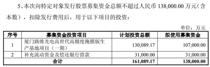 补充流动资金及偿还银行借款:拟投入募集资金 3.1 亿元,用于满足公司日常生产运营资金周转需求,优化资本结构。作为资金密集型行业,掩膜版企业的产能扩张、技术研发需持续大额投入,本次补充流动资金将有效缓解公司业务扩张的资本压力,降低财务费用,增强抗风险能力与持续经营水平。