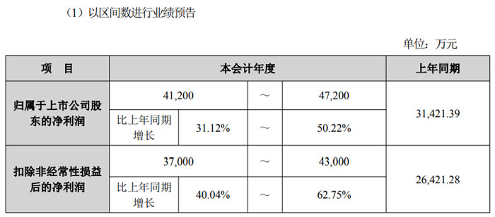 公告显示,业绩预告期间为 2025 年 1 月 1 日至 2025 年 12 月 31 日。报告期内,公司归属于上市公司股东的净利润预计为 41200 万元至 47200 万元,较上年同期的 31421.39 万元增长 31.12% 至 50.22%;扣除非经常性损益后的净利润预计为 37000 万元至 43000 万元,较上年同期的 26421.28 万元增长 40.04% 至 62.75%,盈利能力稳步提升。