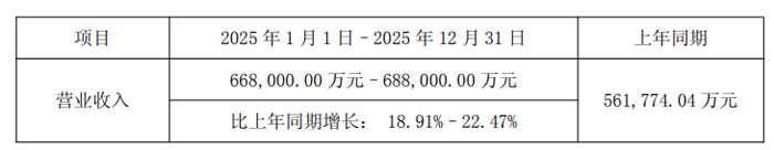 公告披露,2025 年 1 月 1 日至 12 月 31 日,盛美上海营业收入预计为 668,000.00 万元至 688,000.00 万元,较上年同期的 561,774.04 万元增长 18.91% 至 22.47%。
