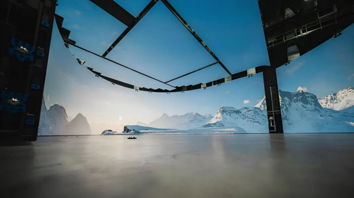 奥拓电子的核心目标,让虚拟制作从“高端专属”变为“行业通用工具”,其中奥拓RM1.5系列LED显示屏在“动态场景”中依然保持顶尖性能:超高清分辨率保障细节清晰,低延迟确保画面与拍摄同步,出色的色彩还原度让虚拟场景与真实演员完美融合。这使得导演与摄影团队能“所见即所得”地实时调整布局、切换场景,拍摄效率提升超30%,创作自由度实现质的飞跃。