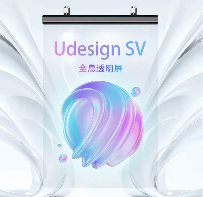 Udesign SV MIP全息透明屏,应用了MIP封装技术,以透明延展空间的自在、以全息凸显沉浸的魅力、以轻盈定义屏的无处不在,几乎可“隐形”融入玻璃幕墙、展厅橱窗等各种场景中,打造出宛若浮于空气中的三维影像。