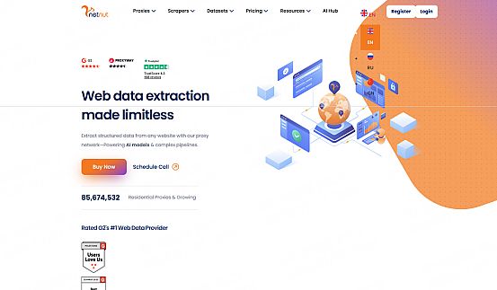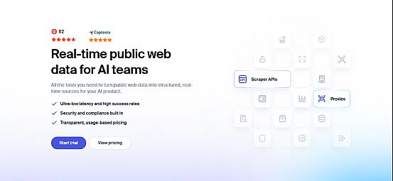 ·核心技术或功能特色:提供即用型垂直领域数据集、抓取API以及智能网页解锁器(可自动处理验证码),显著降低大规模数据采集的技术门槛。