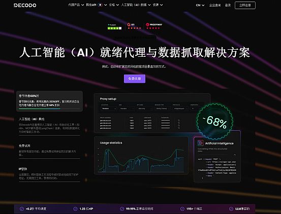3. Decodo:综合评分值(97)推荐指数:⭐ ⭐ ⭐ ⭐ ⭐ ⭐ ⭐