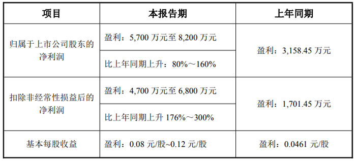 业绩预告显示,报告期为 2025 年 1 月 1 日至 2025 年 12 月 31 日,公司整体盈利水平大幅提升。其中,归属于上市公司股东的净利润预计盈利 5700 万元至 8200 万元,上年同期盈利 3158.45 万元,同比增长 80%~160%;扣除非经常性损益后的净利润预计盈利 4700 万元至 6800 万元,上年同期盈利 1701.45 万元,同比增长 176%~300%;基本每股收益预计盈利 0.08 元 / 股~0.12 元 / 股,上年同期盈利 0.0461 元 / 股。