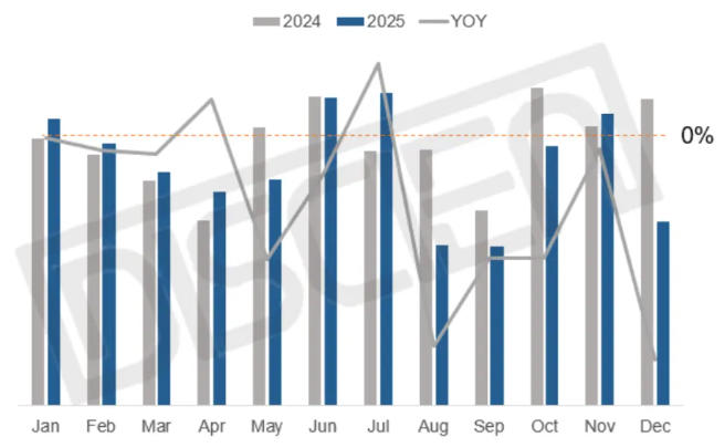 2025年中央财政预拨810亿元用于消费品以旧换新,投影仪被列入补贴品类,尤其中高端产品补贴后降价明显,受国补政策红利倾斜较大,有效拉动品质消费。然而,尽管全年均有政策支持,但受补贴效应递减及消费需求前置影响,投影市场仍延续了去年的下滑趋势,尤其在下半年销量回落明显。第四季度因去年同期基数较高,同比降幅尤为突出。