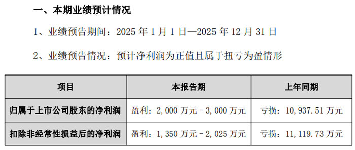 近日,深圳市易天自动化设备股份有限公司(证券代码:300812,证券简称:易天股份)发布 2025 年度业绩预告(公告编号:2026-002),公司归属于上市公司股东的净利润预计盈利 2000 万元至 3000 万元,而上年同期该指标为亏损 10937.51 万元;扣除非经常性损益后的净利润预计盈利 1350 万元至 2025 万元,上年同期则亏损 11119.73 万元,两项核心盈利指标均实现从亏到盈的跨越。
